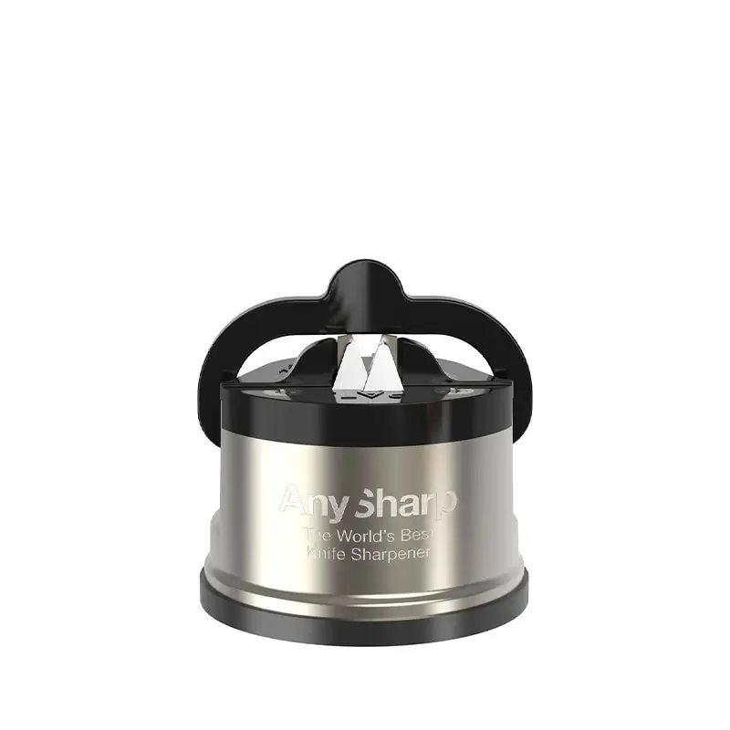 Et smart kompakt og super funktionel knivsliber i særklasse. Den geniale sugekop som sættes fast på køkkenbordet sikrer, at du let med en hånd kan slibe dine knive. Du kan slibe alle dine knive – selv brødknive! Anysharp Pro knivsliberen har den mest optimale vinkel på 20 grader, der sikrer den bedst mulige slibning af dine køkkenknive. Placér blot kniven ovenpå de to skarpe slibeblade af tungsten, og træk herefter kniven let henover 3-4 gange. Anysharp Pro gør det ualmindeligt nemt for dig at slibe og vedligeholde alle dine køkkenknive. 1-2-3 slib!