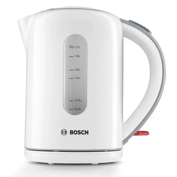 Model TWK7601. Elkande fremstillet i plas, hvilket gør den lettere end fx kander i stål. Rummer op til 1,7 ltr. Med skjult varmelegeme og aftageligt kalkfilter. 2200 watt.