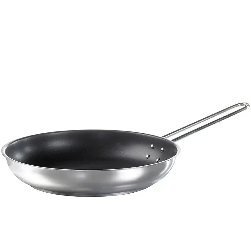 30 cm. I højglanspoleret stål med en sandwichbund. Slip-Let belægning. Med kolde greb. Til alle komfurtyper – også induktion.