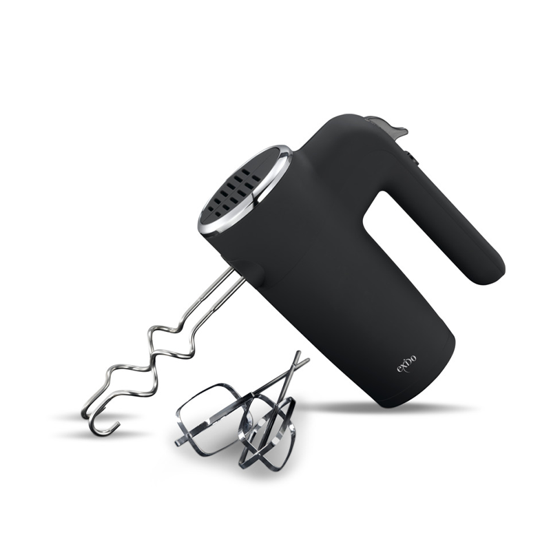 Håndmixer fra Exido med 6 hastigheder samt turbofunktion. 2 dejkroge og 2 piskeris medfølger.