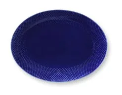 Både farven og formen på et serveringsfad er med til at skabe oplevelsen af den mad, vi spiser. Måske har fadet en farve, der står i stærk kontrast til ingredienserne i retten, så der skabes et overraskende visuelt udtryk. Eller en farve, der taler sammen med en eller flere af rettens elementer, så udtrykket bliver harmoniske og sammenhængende linjer til perfektion. Uanset hvad, er der rig mulighed for at skabe en personlig og kreativ præsentation og oplevelse af maden med fadene i Rhombe Color-serien. Rhombe Color-seriens store, ovale serveringsfad på 35 cm kommer nu også i mørkeblå, og det mellemstore serveringsfad på 28 cm kommer i blå. De blå farver har et køligt og indbydende udtryk, der skærper sanserne og præsenterer maden smukt og overraskende.
