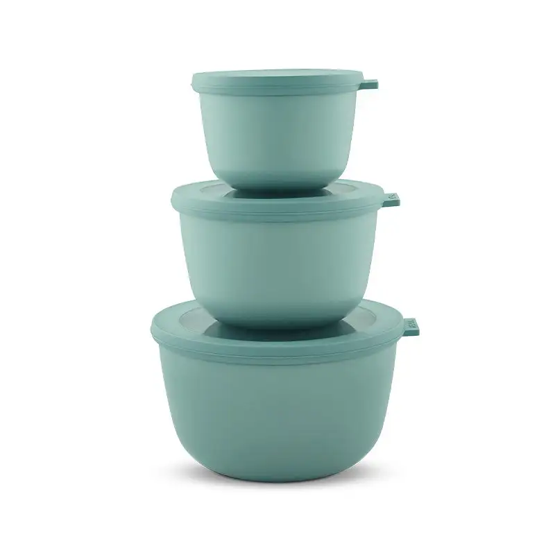 Cirqula er perfekte skåle til både opbevaring og servering. Skålen tåler mikroovn. Låg og skål tåler opvaskemaskine.Sættet består af skåle 500 ml, 1000 ml, 2000 ml og 3000 ml.Mepal Cirqula opbevarings- og serveringsskål – rummelig, praktisk og dekorativ i kølige, nordiske farvetoner.Mepal Cirqula skålen er en handy all-round skål, som kan bruges til fødevarer både i køleskabet og køkkenskabet. Samtidig er den dekorative skål også velegnet til servering.Skålen kan bruges i fryser ned til -20 grader, i mikroovn og kan maskinopvaskes. Opvarmning til maks. 110 grader og uden låg.Udformningen af skålen gør, at den er let at stable og de tomme skåle fylder derfor ikke meget i køkkenskabet.Skålens låg har et transparent vindue, så man let kan se indholdet og det tætsluttende låg gør skålen vandtæt. Materialet er PP-plast, et robust og slagfast materiale, som holder til det meste.