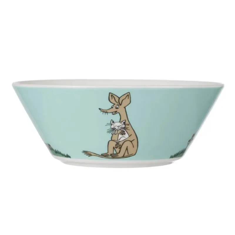 Mumi by Arabia skål 15 cm Sniff bor, ligesom Lille My i Mumifamiliens hus. Han elsker at være sammen med Mumitroldene i alt hvad de foretager sig – med mindre det bliver farligt, for Sniff er let at skræmme. Han er meget velopdragen, men han er helt vild med ædelstene og ting der glimter. Sniff bruger en masse tid på at regne ud hvordan han kan blive rig – men hans planer bliver aldrig rigtigt til noget