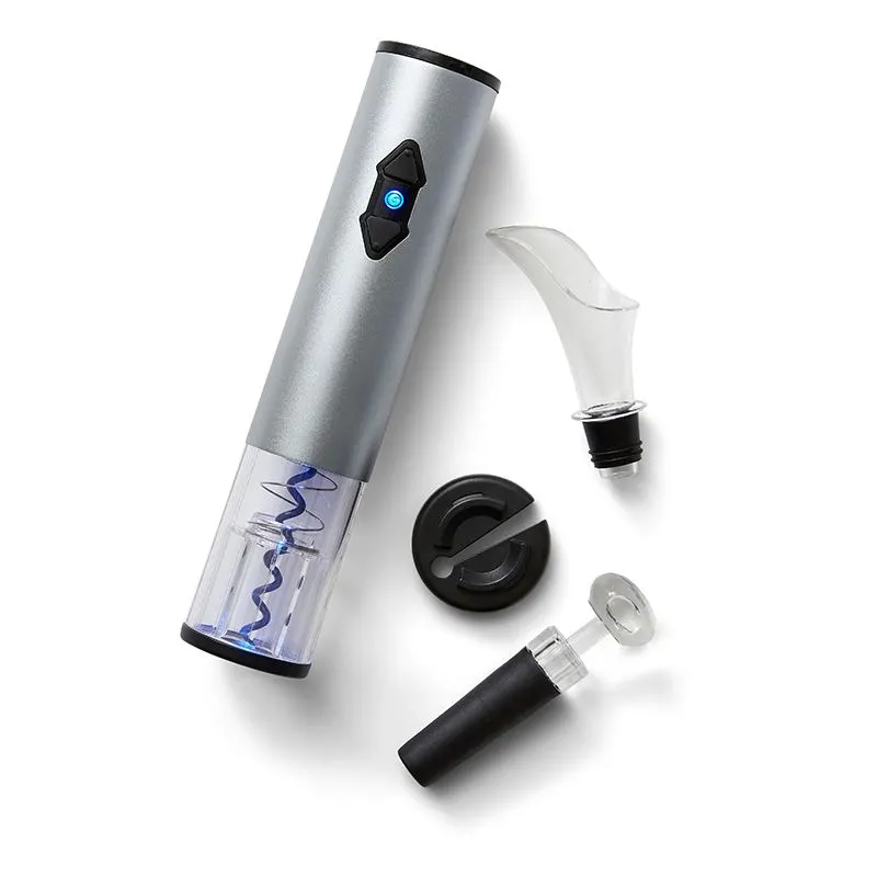 Nordic Sense elektrisk vinåbner. Sæt med batteridrevet vinåbner, folieskærer, skænketud og vinprop/-pumpe. Vinåbner anvender 4 stk. AA batteri – medfølger ikke.