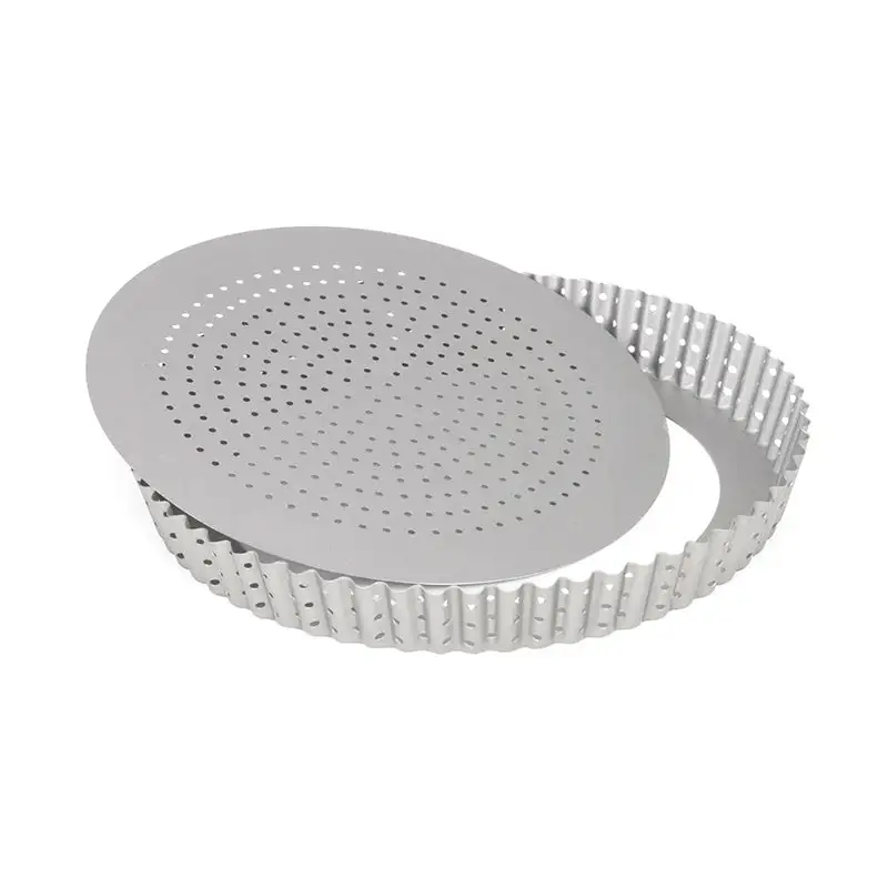 Den perforerede form gør det nemmere at bage en sprød tærtebund da varmen nemmere kommer til dejen og lader fugten fortrænges. Løs bund Diameter 24 cm