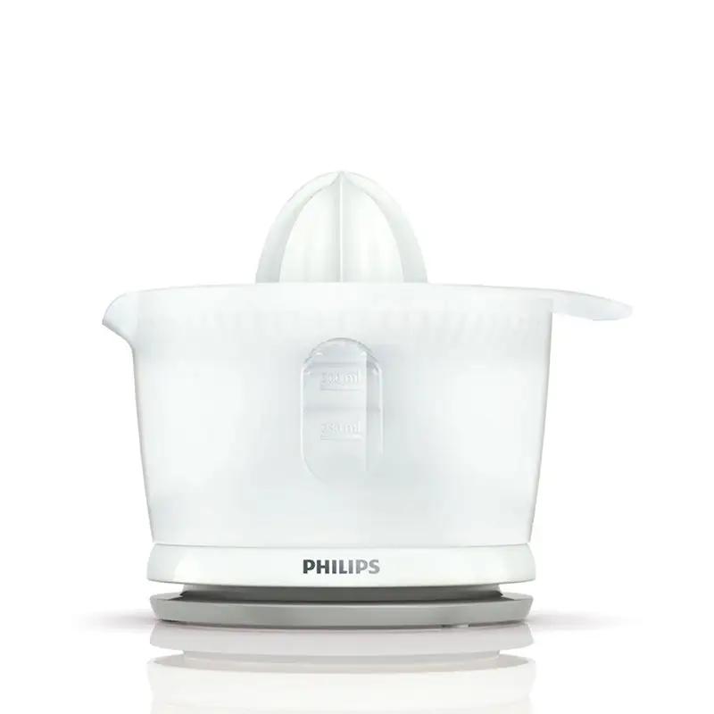 Elektronisk citruspresser fra Philips.Med det kompakte design, optager den ikke meget plads i skabet/ skuffen.Har anti-slip fødder, ledningsopbevaring samt hældetud.Alle dele kan tåle opvaske maskine.