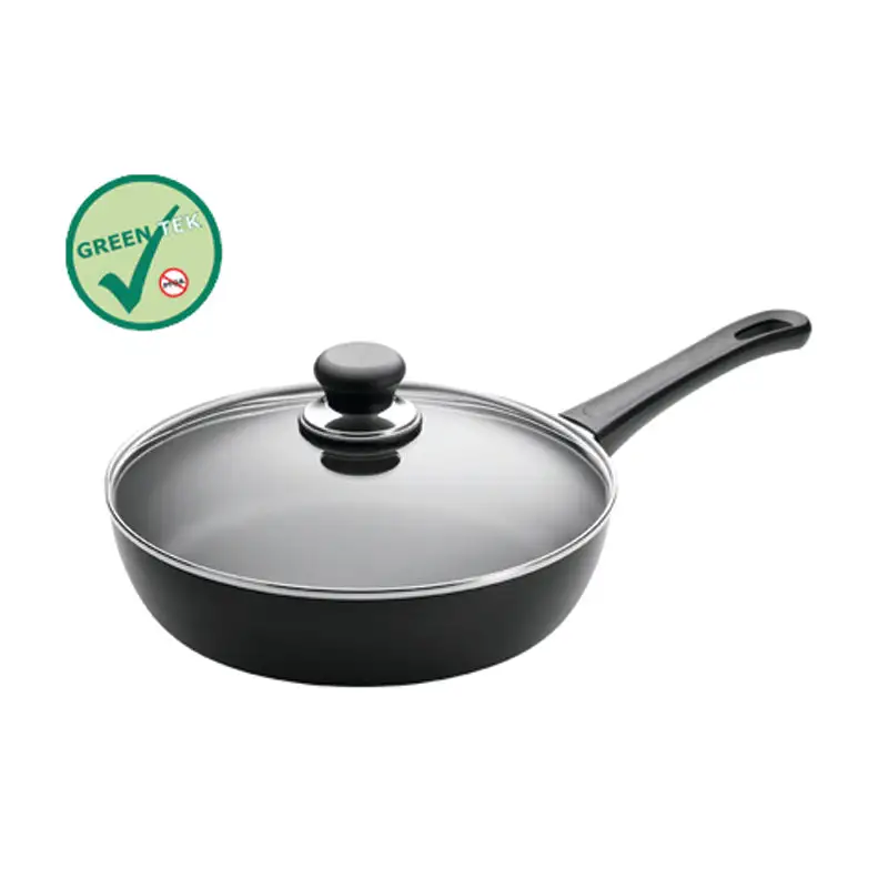 Sauterpande med/uden lågPFOA-fritMiljøvenligt aluminiumSteg fedtfritKeramisk titanium med non-stick belægning – tåler alle typer køkkenredskaber, inkl. metalVelegnet til alle komfurtyper – undtaget induktionBunden forbliver planAltid god og jævn varmefordelingHele serien er ovnfast op til 260°C/500°FTåler opvaskemaskine – dette anbefales dog ikkeKonstrueret og fremstillet i Danmark