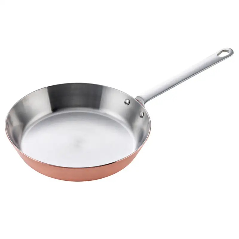 Jeg er meget tilfreds med denne pande. Kobberbunden sikrer, at maden ikke brænder på, og den er perfekt størrelse til min familie.