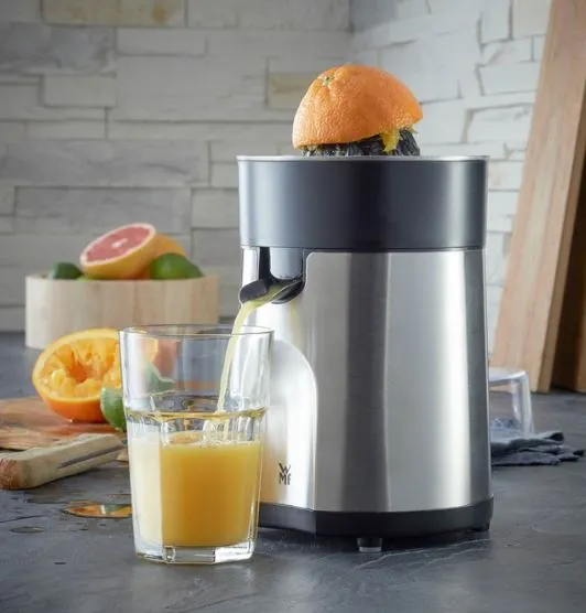 Denne praktiske WMF citronpresser er utrolig nem at bruge, og så kan du nemt forvandle appelsiner, mandariner, grapefrugt og lime til en ren vitaminbombe i et snuptag. Med si-indsatsen i rustfrit stål og de to pressekegler, som både kan udskiftes og tåle opvaskemaskine, er denne citronpresser utrolig nem at rengøre.